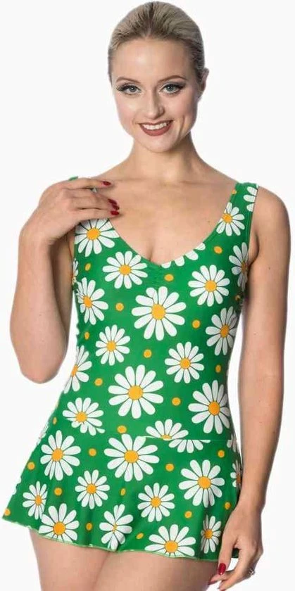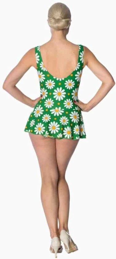 Banned. Crazy Daisy groen zwempak met madeliefjes patroon en rokje.