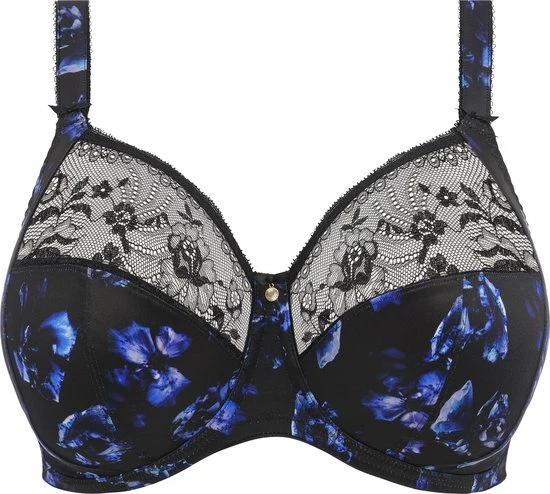 Elomi Morgan-collectie draait om alledaags comfort en stijl in de kleur twilight zwart met diep blauw. De bh heeft een subtiele dierenprint en prachtige stretchkant. Driedelige cups met side support biedt ultieme ondersteuning en vorm.