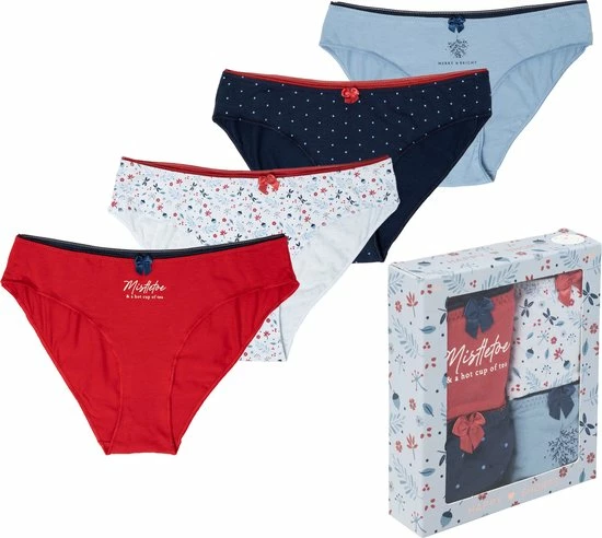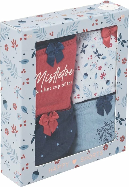 Happy Shorts dames kerst ondergoed () special. Voordeel pack van 4 kerst dames slips verpakt in een leuke geschenkverpakking. De kerstspecial onderbroeken zijn alleen tijdelijk verkrijgbaar.