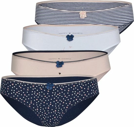 Happy Shorts dames hartjes ondergoed special. Voordeel pack van 4 dames slips verpakt in een leuke geschenkverpakking. Valentijnsdag tip!