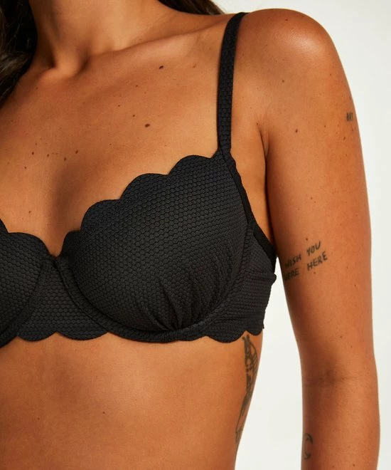 Wees zelfverzekerd in deze mooie bikinitop! De top heeft tussen de cups een strik en aan de bovenkant zit een golvend randje. De schouderbandjes zijn verstelbaar. Combineer deze bikinitop met de bijpassende slip om je set compleet te maken!