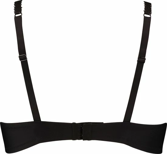 Deze niet-voorgevormde beugel bh is uitgevoerd in semi-transparant kant bij de cups. De schouderbandjes zijn versierd en de bh is afgewerkt met strikjes op de schouderbandjes en tussen de cups.