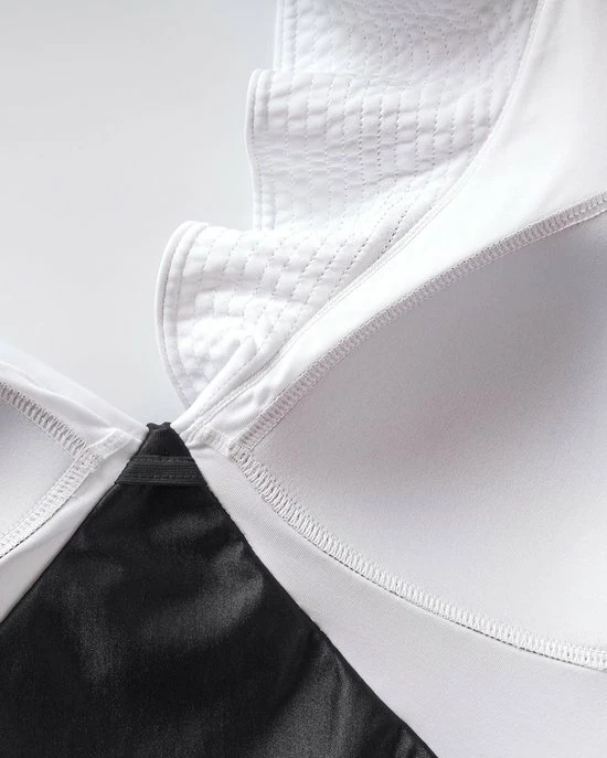 - De schouder ruche behoudt zijn vorm, zelfs bij contact met water