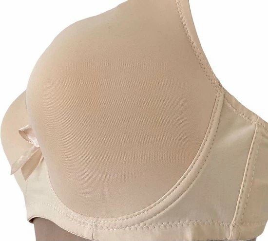 Mooi effen gladde BH met beugel 85D. De confectiemaat is 42-44 met een D cup. De BH draagt comfortabel en voelt zacht aan. De bh heeft vaste schouderbandjes die verstelbaar zijn en haak sluiting aan de achterkant. Het materiaal is van 90% polyamide en 10% elastaan. Wasbaar met de hand.