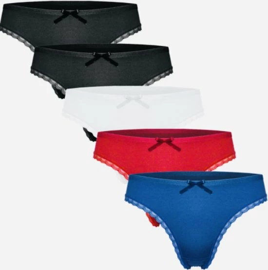Mooie strings effen 5 stuks XL. De string sluit mooi aan uw lichaam doordat de stof zeer elastisch is. De stof is van 95% zijdezachte katoen en 5% elastaan. Het blijft mooi na veel wasbeurten en het krimpt niet. De maat valt naar 42-44 en is wasbaar op 40 graden.