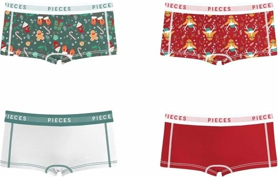 95% organisch katoen 5% Elastaan, fijne en comfortabele elastisch katoenen dames shorts van Pieces in een 4-pack