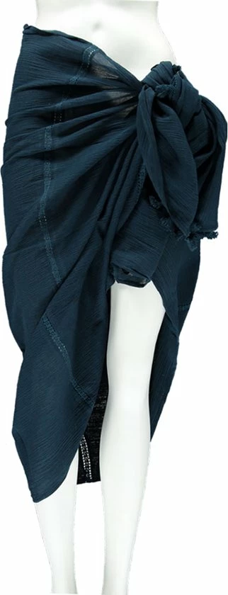 Deze mooie Pareo navy gekleurd is heerlijk te dragen over je bikini of badpak maar ook erg leuk over een short legging. Ook kan je hem als omslag top gebruiken. Tal van mogelijkheden dus.